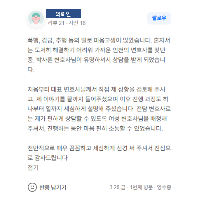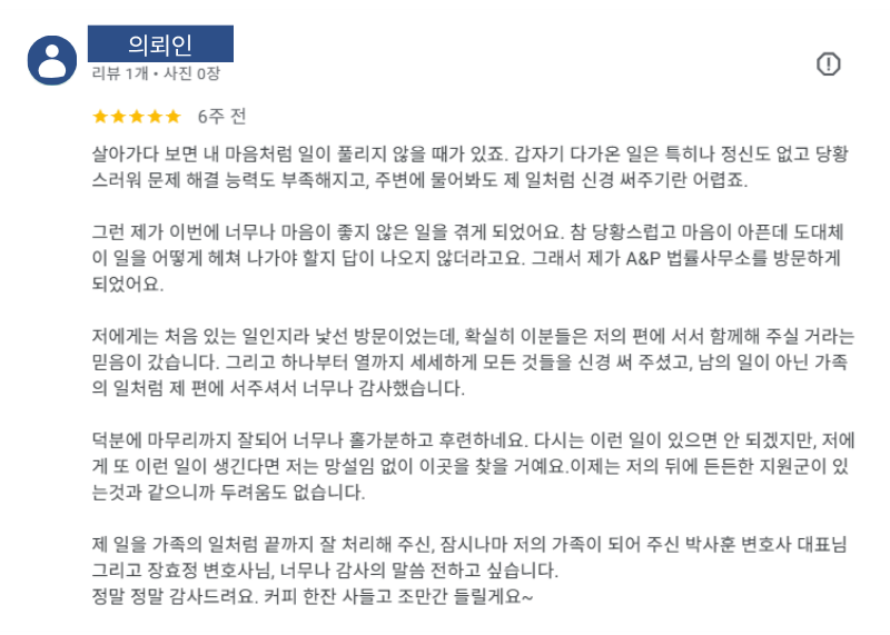 ※ 이 글은 ‘법률사무소 A&P 업무협약’ 관련 언론보도입니다.최근 학교폭력, 성범죄, 가정폭력, 이혼·가사, 보이스피싱, 전세사기 등 다양한 사건에서 단순한 법적 분쟁 해결을 넘어 심리적 회복의 필요성이 함께 강조되고 있습니다.이와 관련하여 법률사무소 A&P(에이앤피)는 송도 및 부평 지역의 심리상담센터와 업무협약(MOU)을 체결하고, 법률 대응과 심리적 지원을 연계하는 협력체계 구축에 나섰습니다.이번 협약은 법적 해결 과정에서 의뢰인이 겪는 불안, 스트레스, 관계 악화, 그리고 일상 회복의 어려움까지 함께 고려해야 한다는 문제의식에서 출발했습니다.실제 사건 진행 과정에서는 법률적 대응과 별개로 정서적 소진과 트라우마가 지속되는 경우가 많기 때문입니다.협약에 따라 각 기관은 사건 유형에 따른 법률상담–심리상담 연계, 피해 회복을 위한 통합 지원 구조 마련, 예방 교육 및 공익 프로그램 공동 검토 등을 중심으로 협력을 이어갈 예정입니다.특히 이번 협약은 단순한 업무 범위의 확장을 넘어, ‘문제 해결’이 아닌 ‘회복’까지 포함하는 대응 구조를 구축했다는 점에서 의미가 있습니다.기사 보러가기(클릭)기사 다운로드.pdf🔗■ 보도의 의미이번 보도는 기존의 법률서비스가 분쟁 해결 중심이었다면, 앞으로는 법률 + 심리 지원이 결합된 ‘통합 대응’으로 확장되고 있다는 흐름을 보여줍니다.실무적으로는 다음과 같은 변화가 중요합니다.✔ 피해자·의뢰인의 심리 상태를 고려한 사건 대응 필요성 증가✔ 법적 절차 진행 과정에서의 스트레스 및 2차 피해 관리✔ 사건 종료 이후 일상 복귀까지 고려한 지원 체계✔ 상담기관과의 협력을 통한 초기 대응의 중요성특히 학교폭력, 성범죄, 가정폭력, 사기 피해 사건의 경우 법적 판단과 별개로 심리적 회복이 사건 전반에 중요한 영향을 미치는 경우가 많습니다.결국 중요한 것은 “법적으로 어떻게 해결되는가”를 넘어 “의뢰인이 실제로 회복되는가”까지 포함한 접근입니다.이번 협약은 이러한 흐름 속에서 법률사무소의 역할이 단순한 분쟁 해결을 넘어 회복 지원까지 확장되고 있음을 보여주는 사례라고 할 수 있습니다.[관련 분야]학교폭력 · 성범죄 · 가정폭력 · 이혼·가사 · 보이스피싱 · 전세사기 사건 대응법률 문제는 해결되더라도 심리적 회복이 뒤따르지 않는다면 일상으로의 복귀는 쉽지 않습니다. 특히 피해 사건의 경우 초기 대응 방향에 따라 회복의 속도와 결과가 크게 달라질 수 있습니다.법률사무소 A&P(에이앤피)는 앞으로도 단순한 분쟁 해결에 그치지 않고, 의뢰인의 일상 회복까지 함께 고민하는 법률서비스를 지향하며 법률적 대응과 심리적 지원이 균형 있게 이루어질 수 있도록 지속적으로 노력하겠습니다.도움이 필요하신 경우 언제든지 연락 주시기 바랍니다.📞 032-882-0070