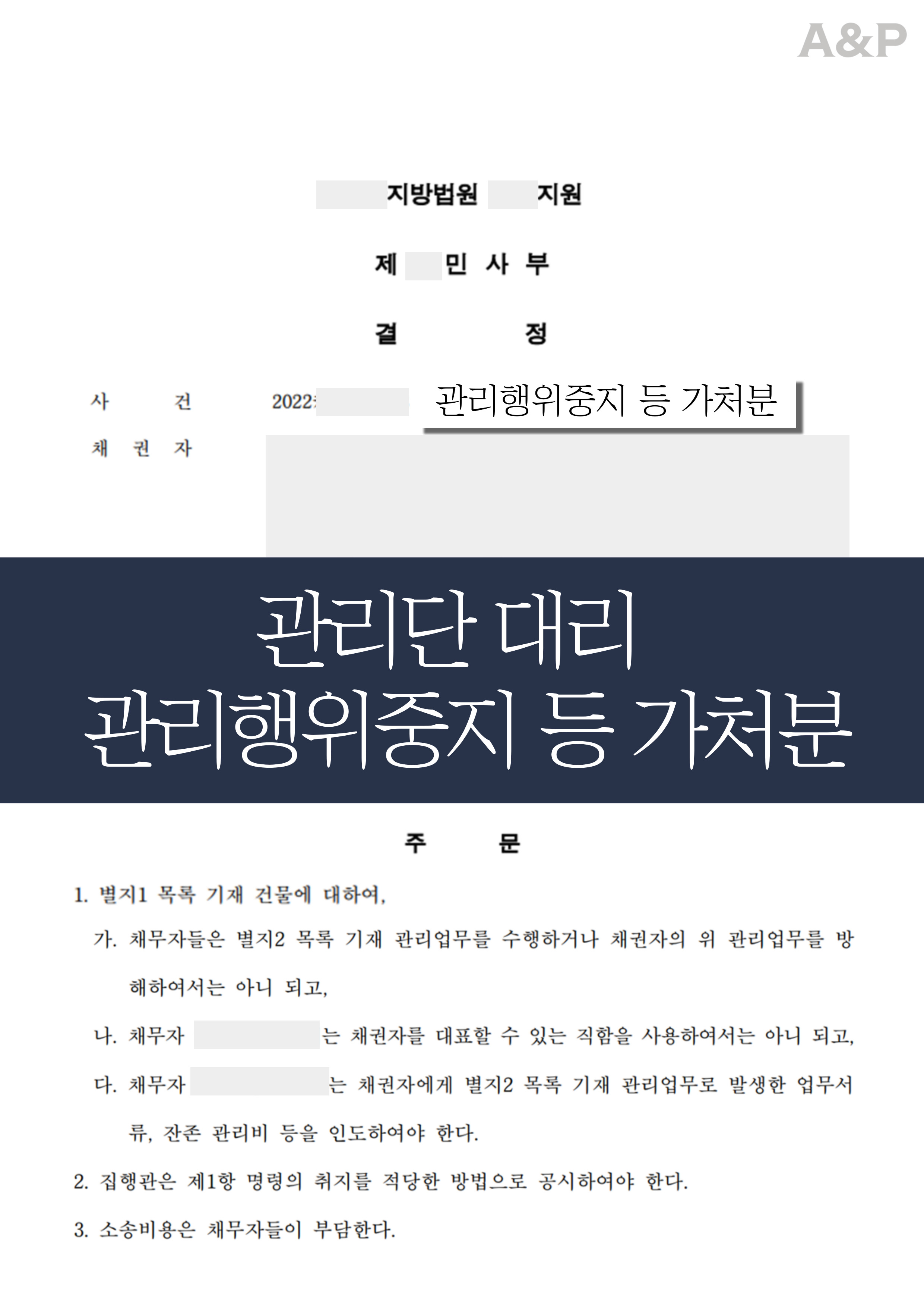 법원은 A&P의 주장을 전부 받아들여 관리행위중지가처분 인용 결정을 내렸습니다.
