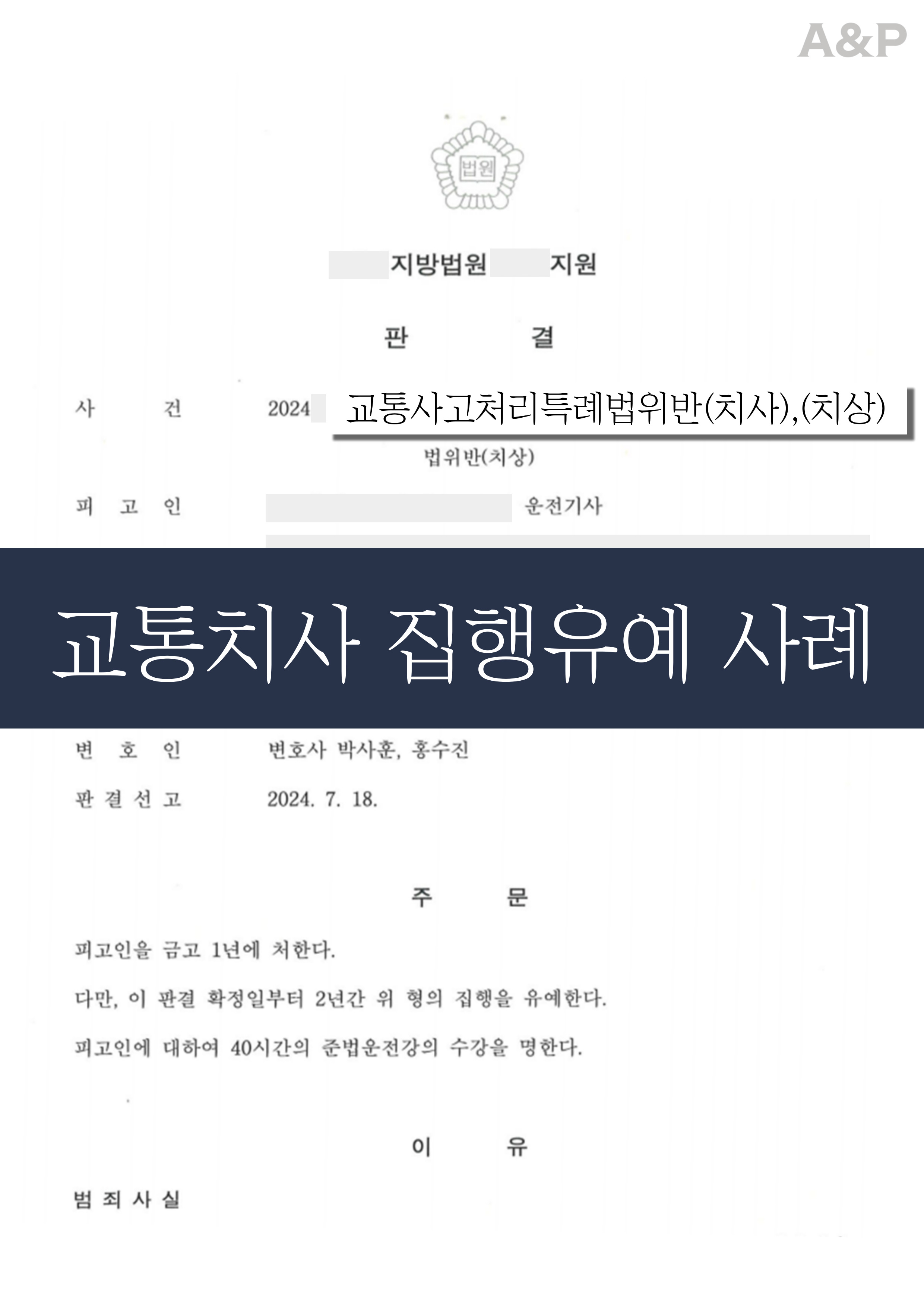 사안은 12대 중과실에 해당해 실형 가능성이 높았고, 의뢰인은 즉시 형사 방어를 위해 법률사무소 A&P를 찾아주셨습니다.