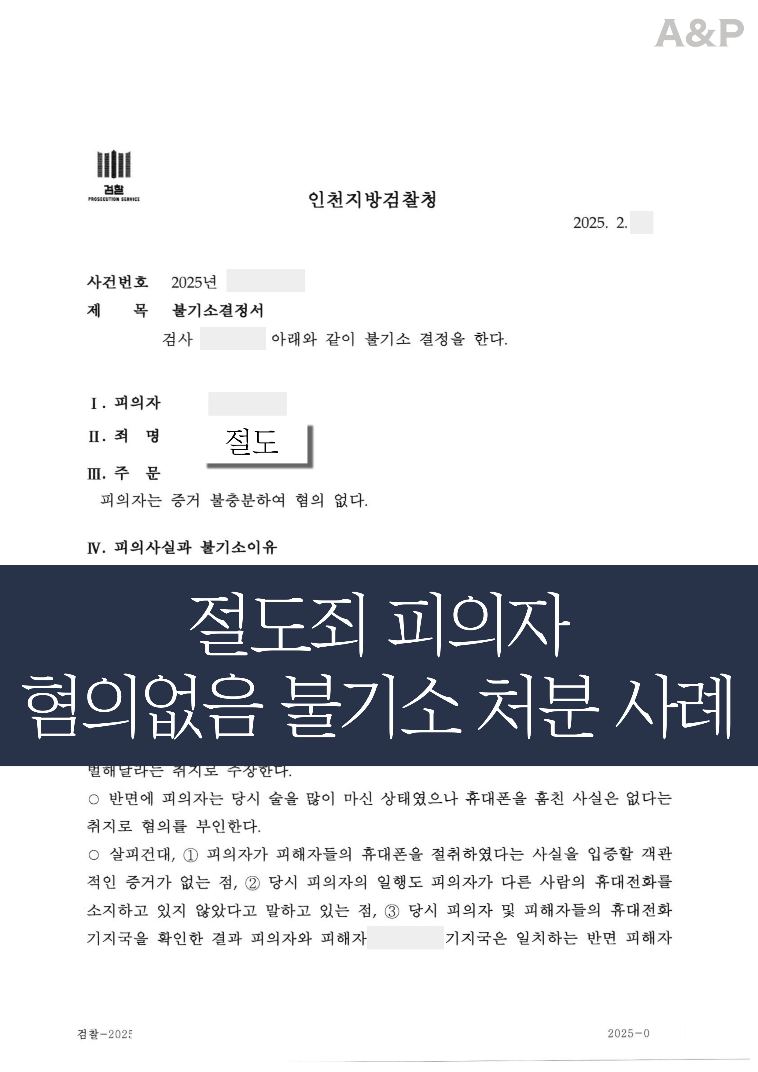 ✔ 또한 경찰 단계에서 불리하게 진행된 사건이라 하더라도, 검찰 단계에서 변호인의 전략적 대응을 통해 충분히 결과를 뒤집을 수 있음을 확인한 사례입니다.