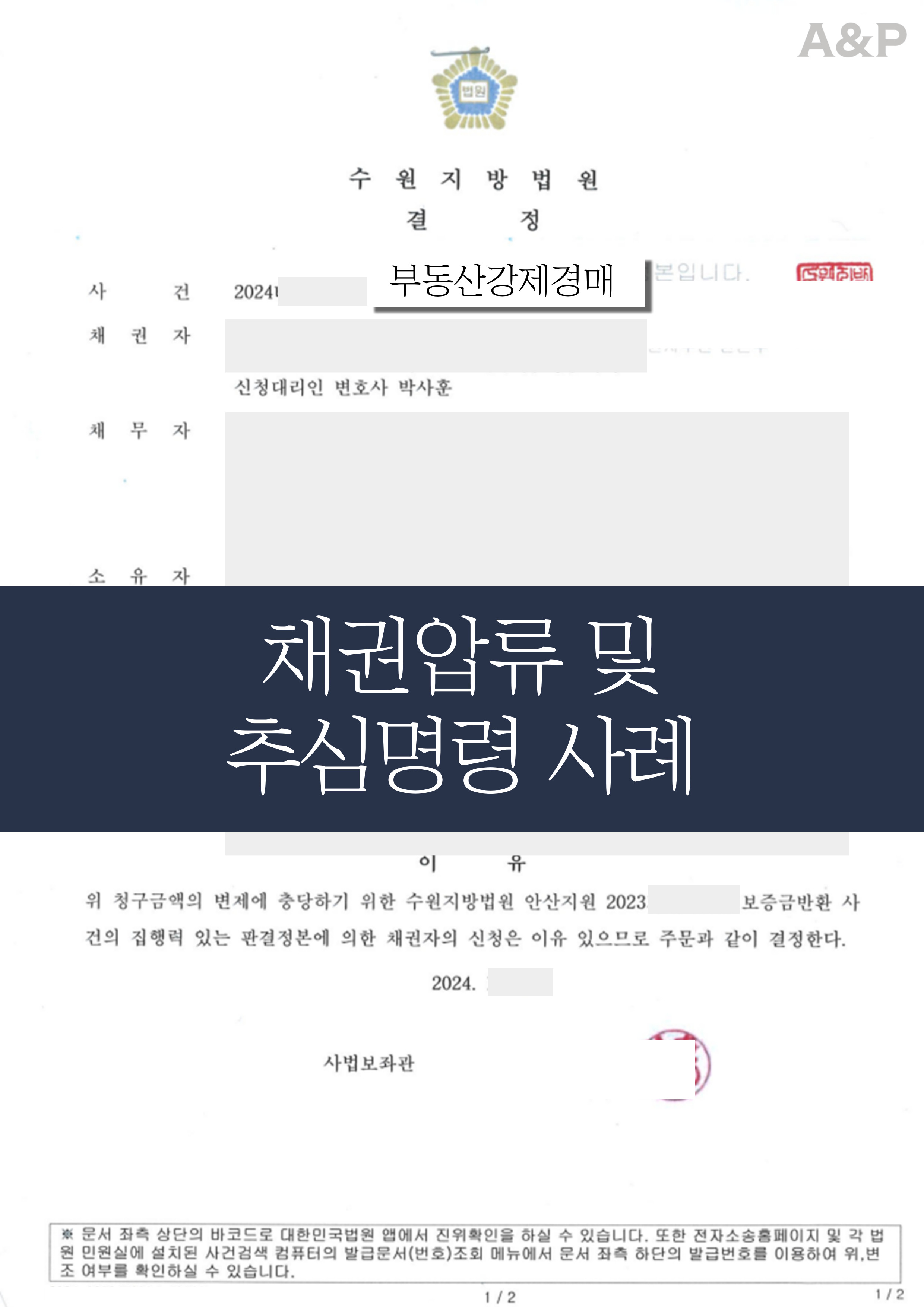 ✔ 전세사기 사건에서 부동산 강제경매 신청으로 법적 압박 병행