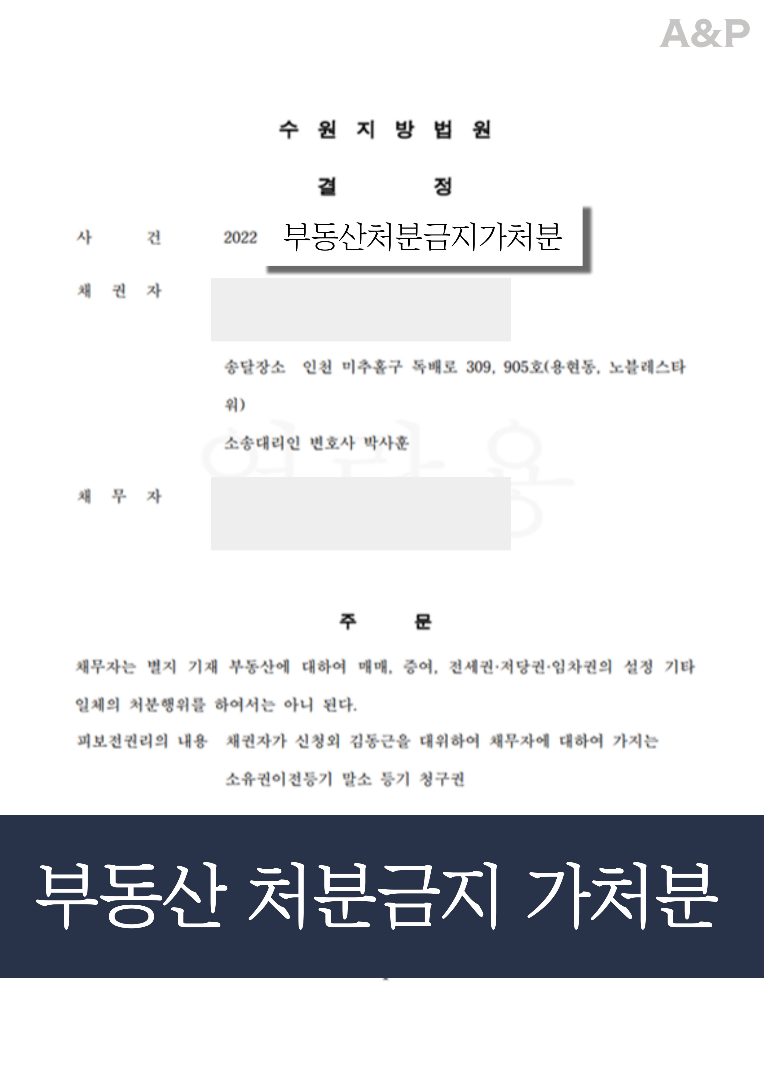 법원은 법률사무소 A&P의 주장을 받아들여 부동산처분금지가처분을 인용하였습니다.
