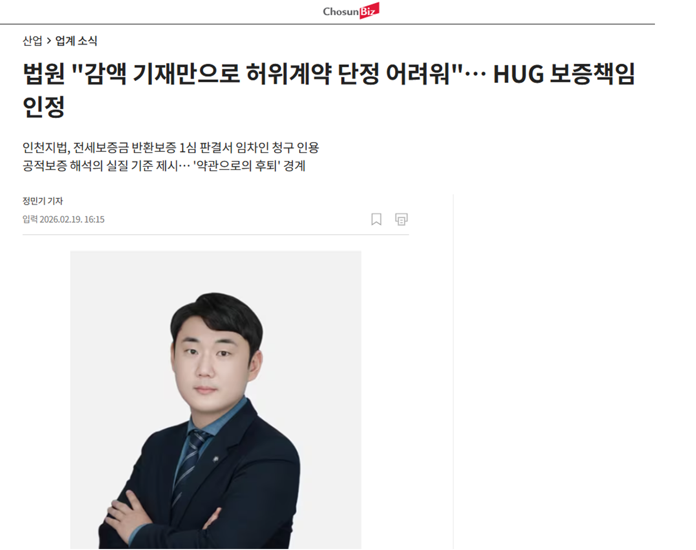 이 보도는 HUG(주택도시보증공사) 전세보증금 반환보증 분쟁에서, 계약서에 기재된 보증금과 실제 지급한 금액 간 차이가 보증책임 면책 사유에 해당하는지 여부가 문제 된 사례를 다룬 기사입니다.