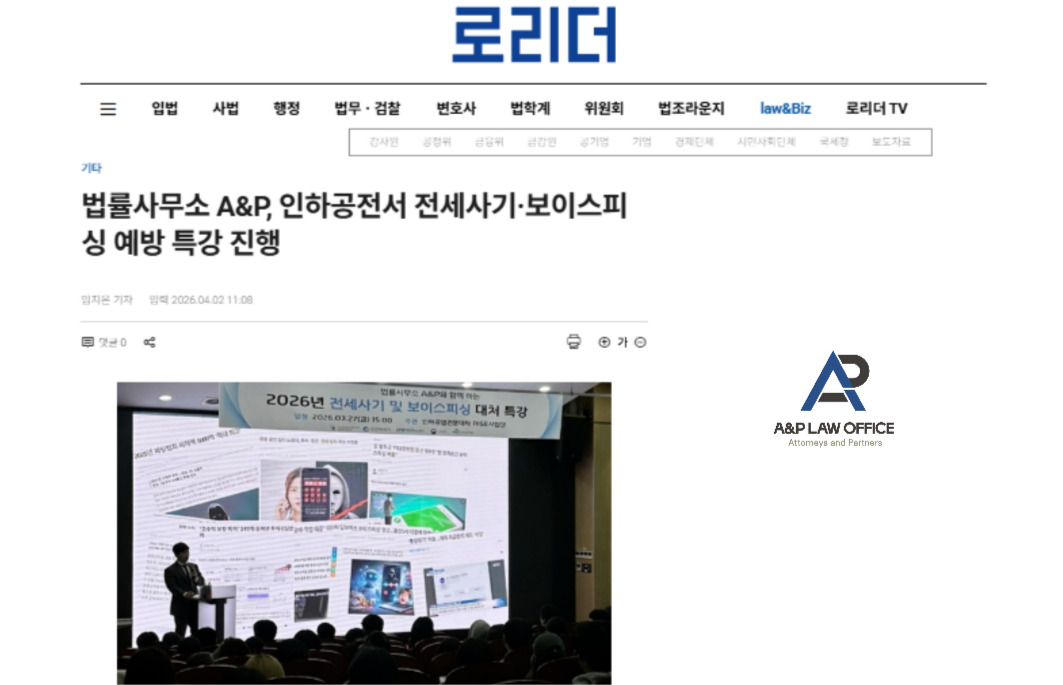 법률사무소 A&P(에이앤피)가 인하공업전문대학에서 전세사기와 보이스피싱 예방을 주제로 특강을 진행했다.