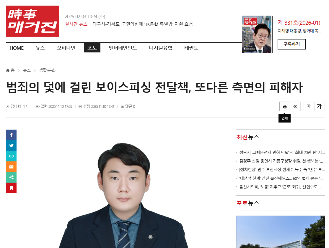 * 이 글은 박사훈 대표변호사의 언론 칼럼을 바탕으로, 보이스피싱 전달책 사건에서 문제 되는 법적 쟁점과 실무상 판단 기준을 정리한 자료입니다.