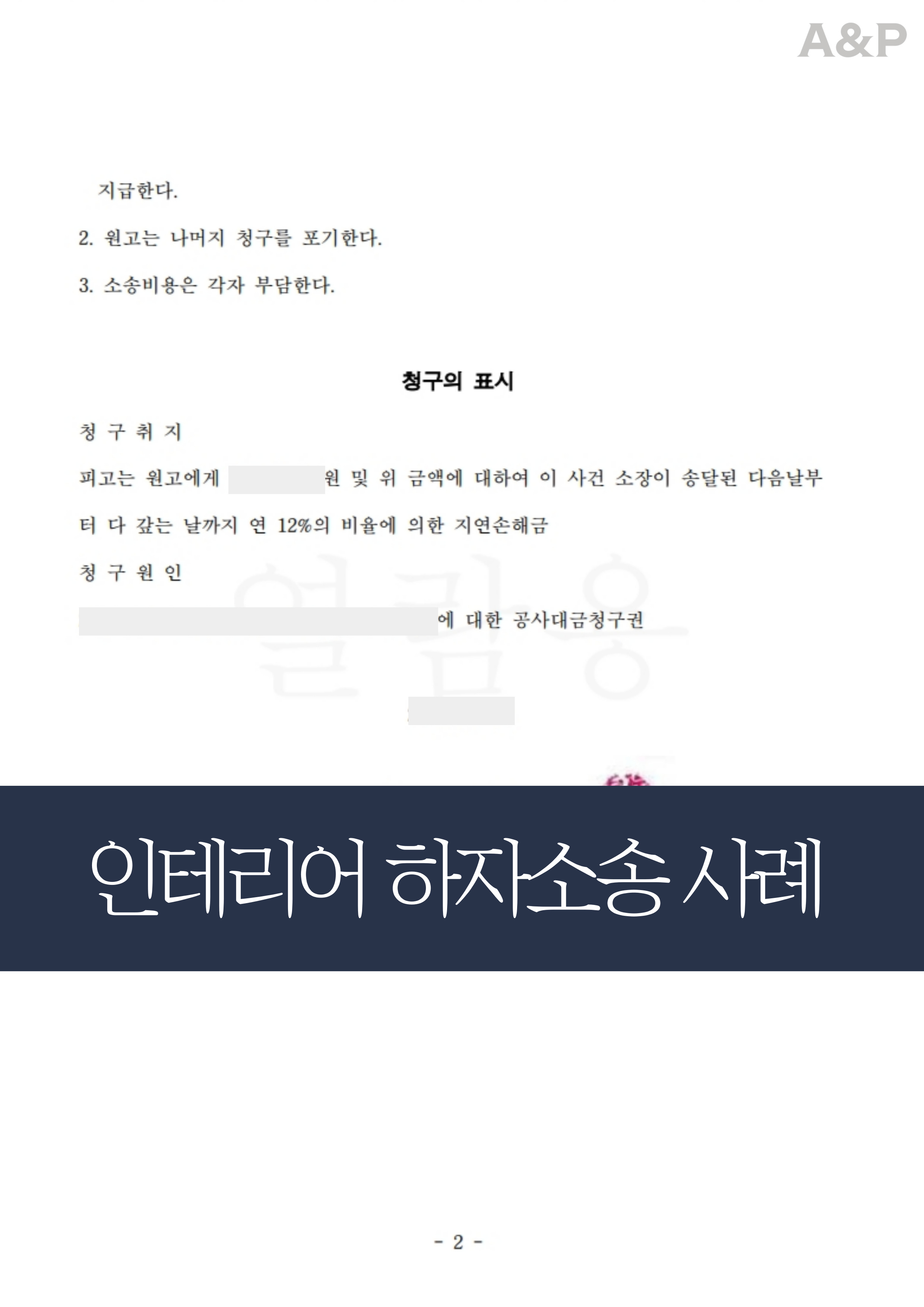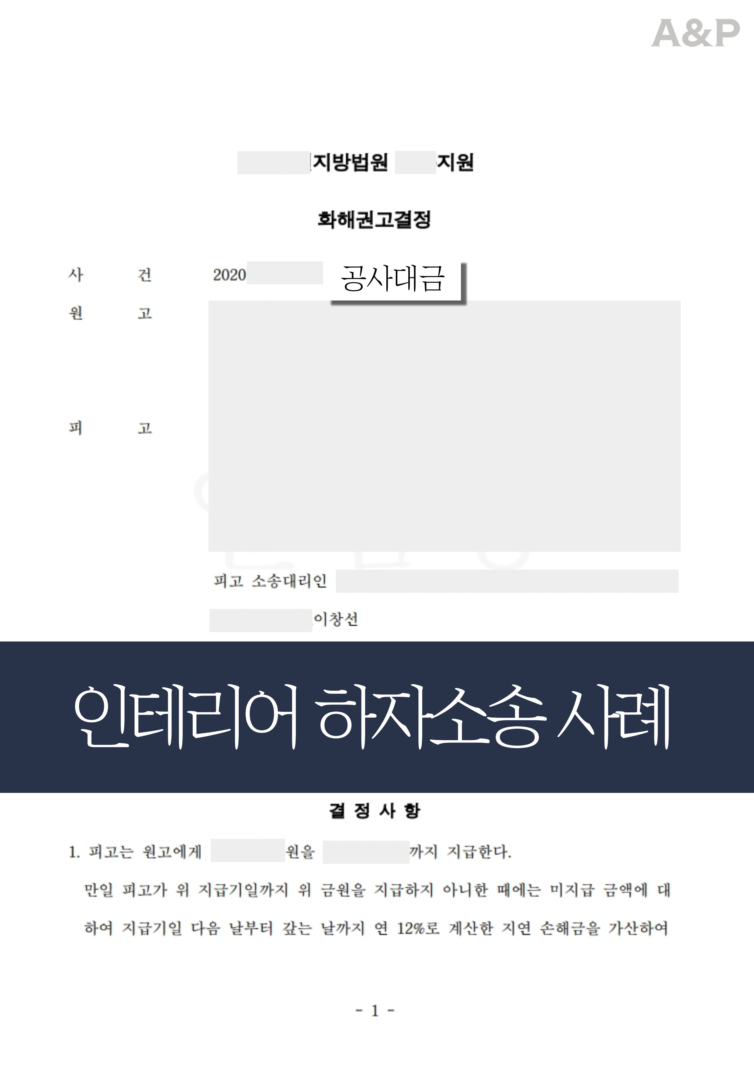 이에 의뢰인이 잔금 지급을 보류하자, 오히려 업체가 공사대금 지급을 청구하는 소송을 제기하였고, 의뢰인은 대응이 필요해 A&P를 찾게 되었습니다.