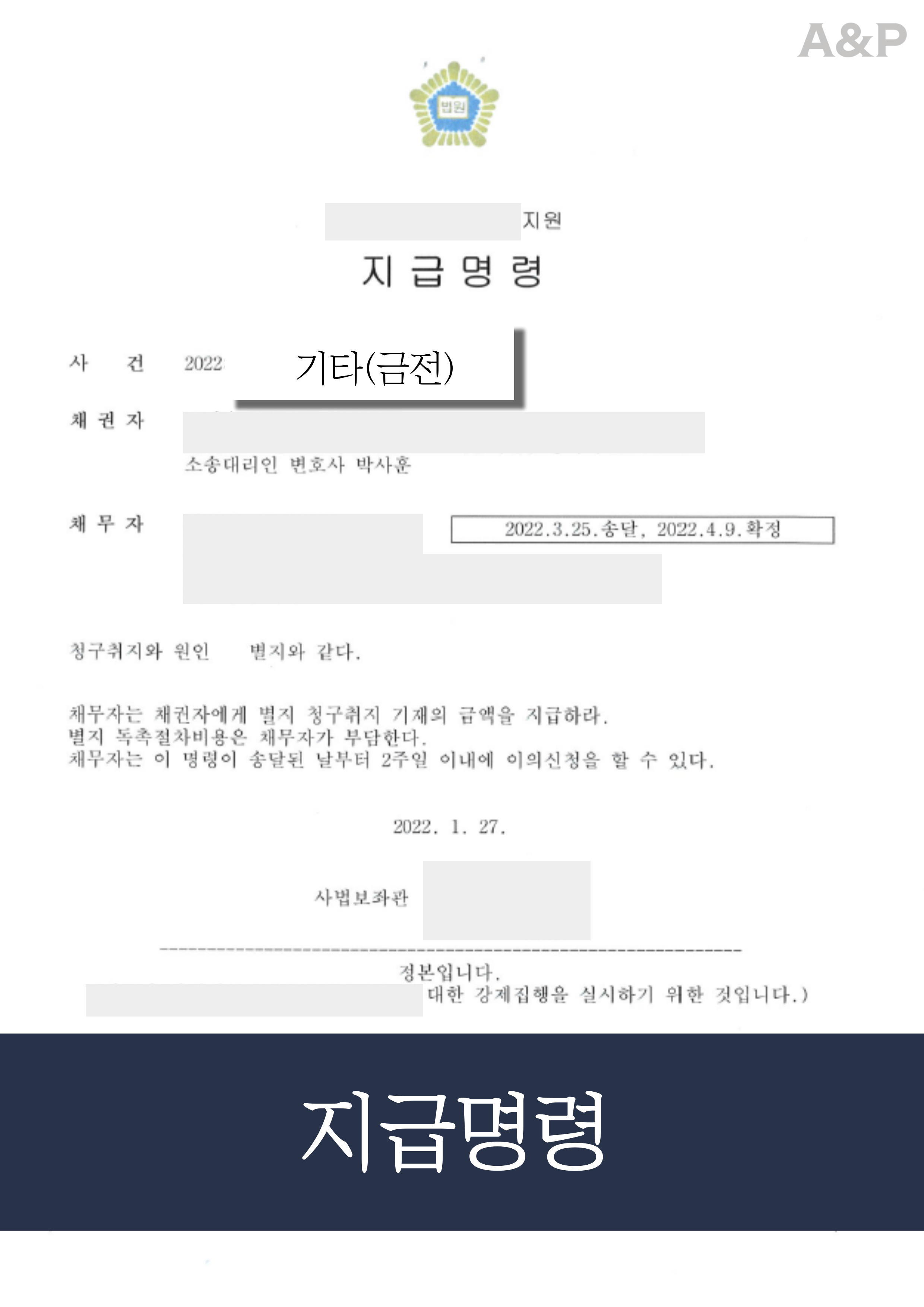 그 결과 지급명령은 그대로 확정되었고, 의뢰인은 이를 집행권원으로 하여 채무자의 재산에 대해 강제집행을 진행할 수 있는 지위를 확보하였습니다.