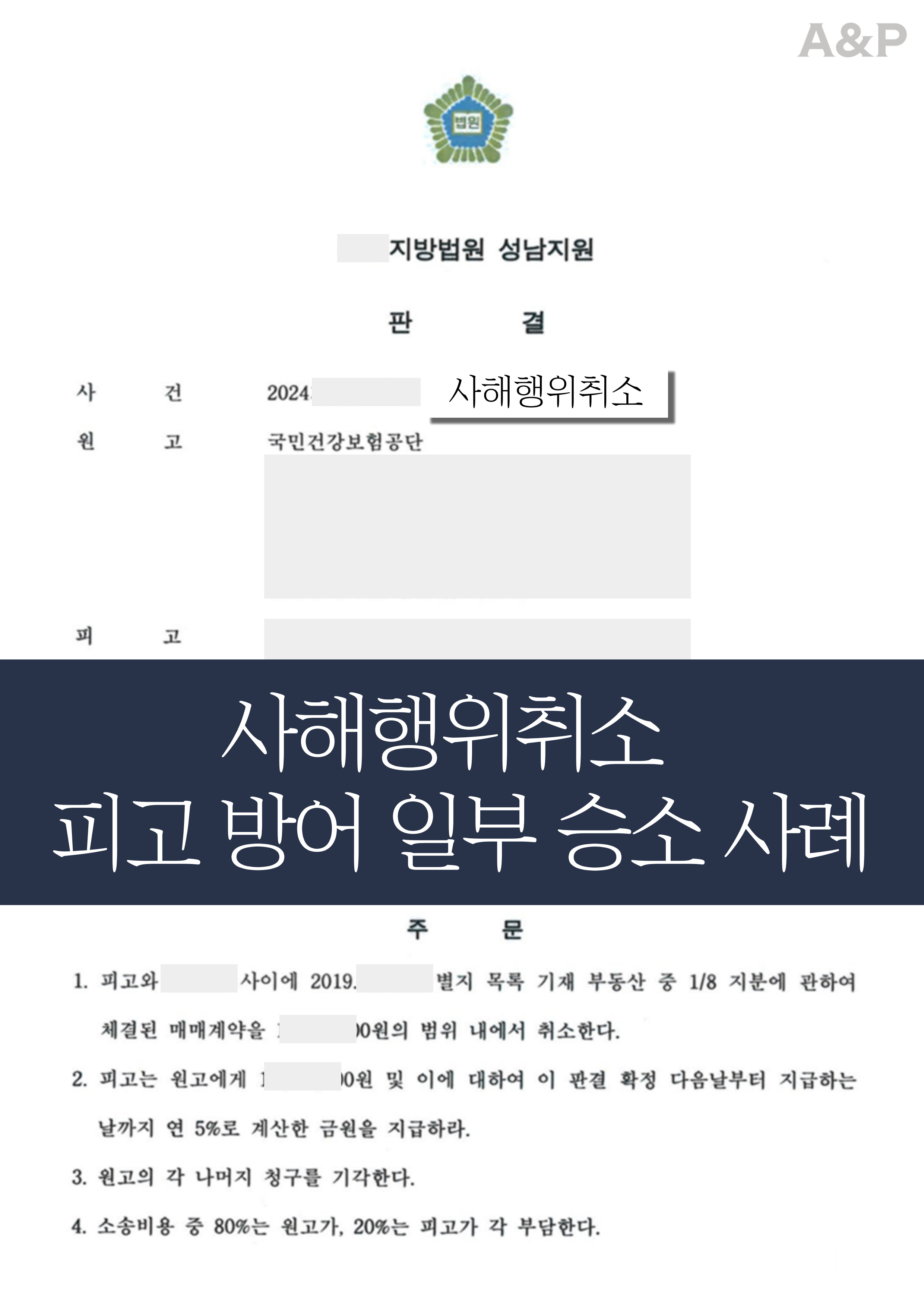 ✔ 무엇보다 사해행위 취소소송은 초기 대응과 법리 중심의 전략 수립 여부에 따라 결과가 크게 달라질 수 있음을 분명히 한 의미 있는 판결이라 할 수 있습니다.