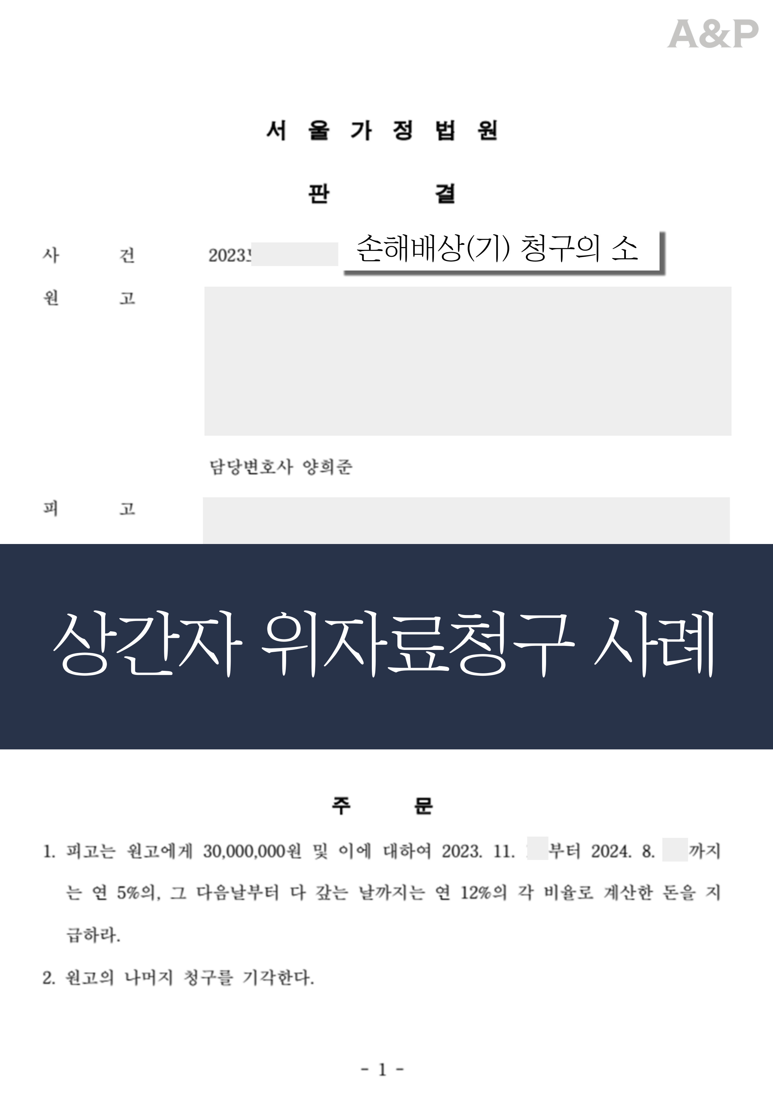 이번 사건에서는 통상적인 위자료 범위를 상회하는 금액이 인정되어, 의뢰인의 정신적 피해가 법적으로 충분히 평가되었습니다.