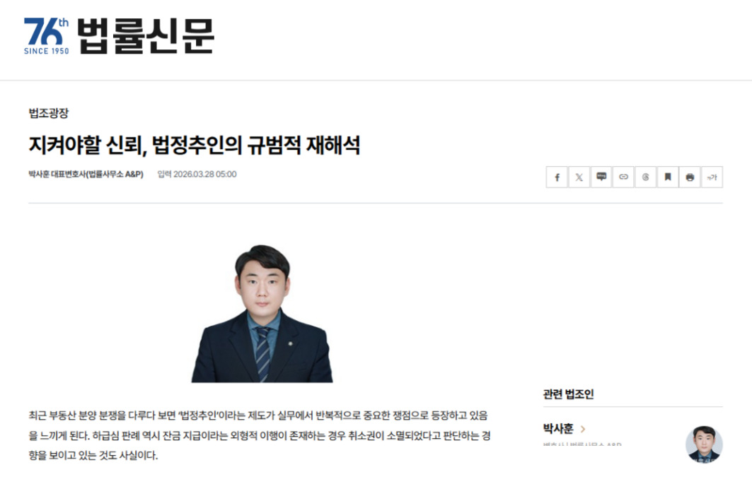 이번 기고문은 잔금 지급이라는 외형적 이행만으로 곧바로 법정추인이 성립하는지에 대해 규범적인 재검토가 필요하다는 문제의식을 중심으로 전개됩니다.